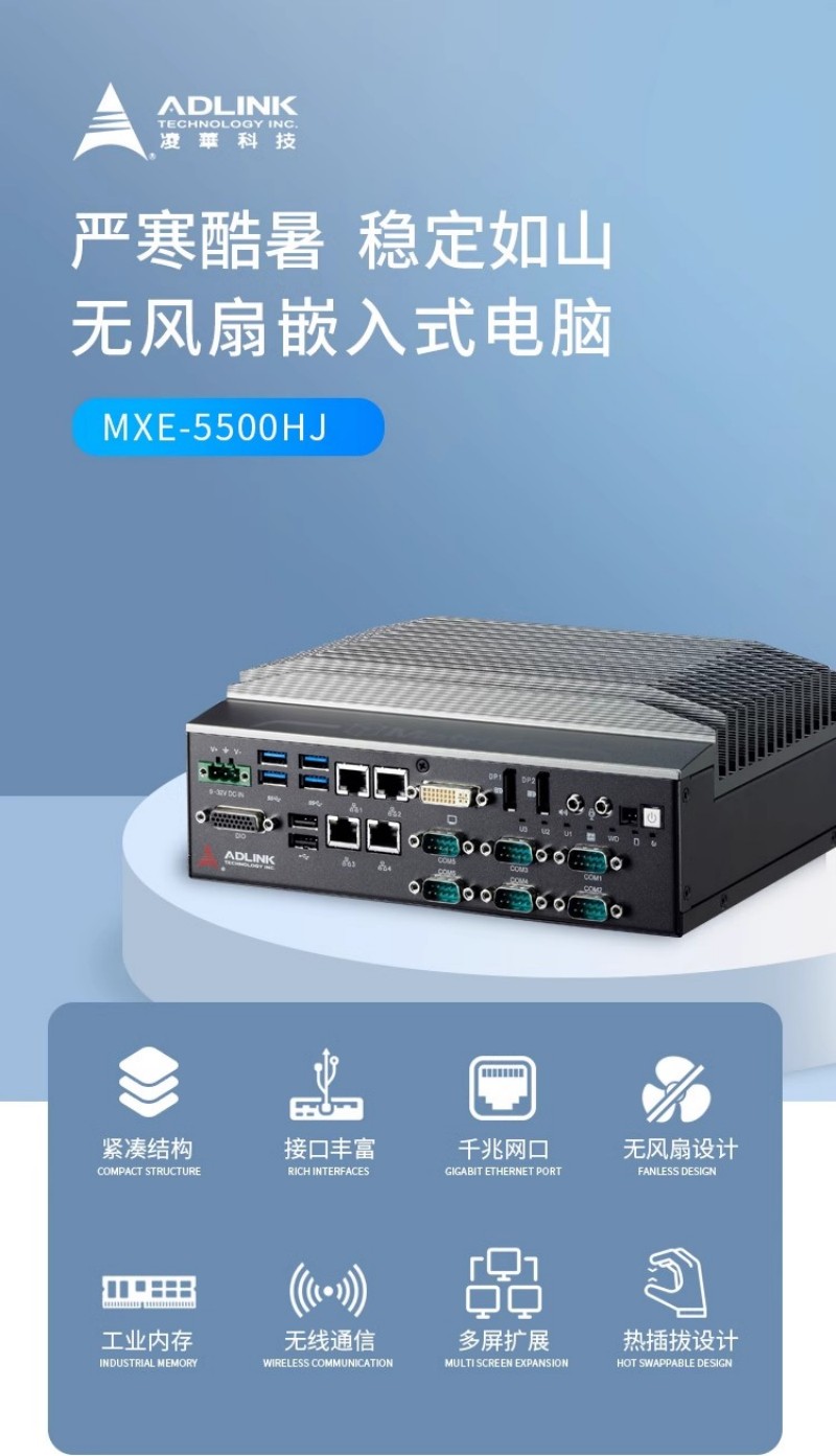 凌華科技寬溫嵌入式無風扇電腦 MXE-5500HJ,通過 6 大核心參數(shù)設計,完美平衡 “維護便捷性” 與 “極端環(huán)境穩(wěn)定性”,讓工業(yè)場景不再妥協(xié):