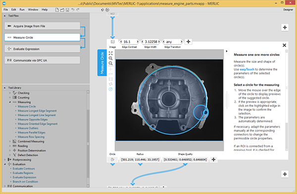 MVTec MERLIC 軟件是一款一體化工具,無需編程即可快速構建機器視覺應用。憑借MVTec在機器視覺領域豐富的經驗,并整合可靠、快速且易用等性能,這款PC-based 完整軟件解決方案具備圖形化的用戶界面,能夠直觀地引導客戶構建自己的應用。類似于所見即所得 (WYSIWYG, what-you-see-is-whatyou-get) 的編輯器,開發人員可以專注于圖像的顯示,而不是復雜的代碼行或參數列表。MERLIC 軟件特別適合需要通過清晰的圖形用戶界面進行圖像功能配置的應用。